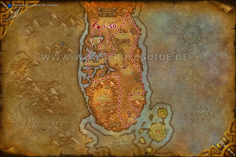 Dun Morogh, Dunkelküste, Nördliches Brachland, Mulgore, Tirisfal, Immersangwald