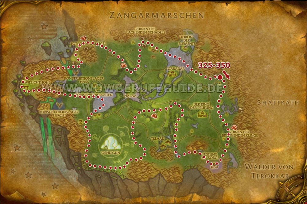 Hinweis: Wenn ihr wollt, könnt ihr auch gerne in der Höllenfeuerhalbinsel bis Fertigkeit 350 bleiben.